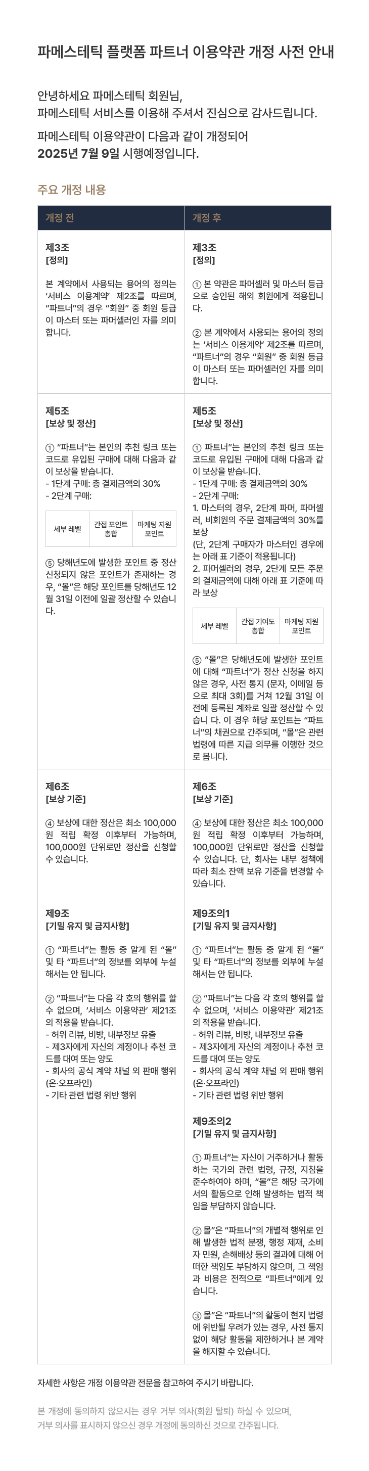 파메스테틱 플랫폼 파트너 이용 약관 개정 사전 안내